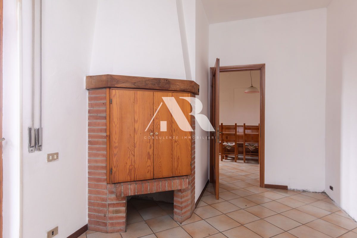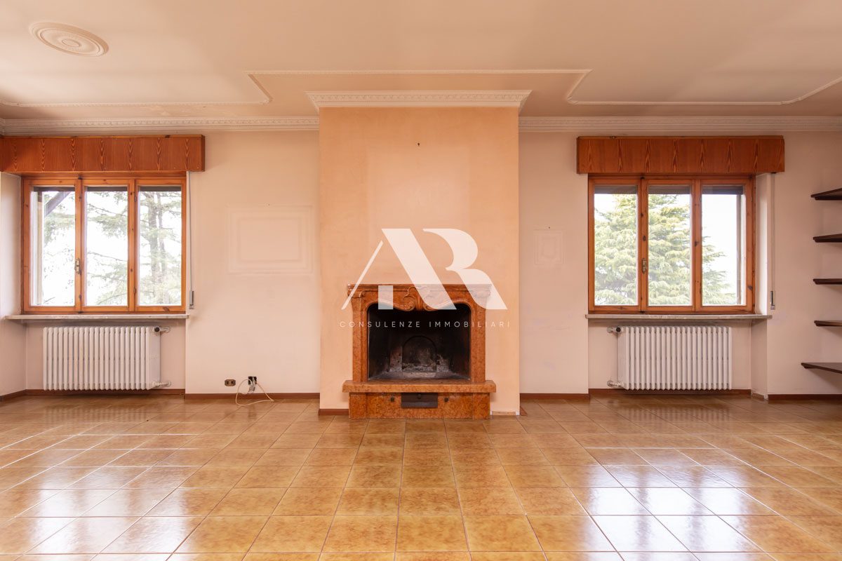 La zona giorno, di generose dimensioni, è composta da un ampio ingresso, salone con camino e vista sulle colline, sala da pranzo, cucina abitabile con un secondo camino e bagno ospiti finestrato.