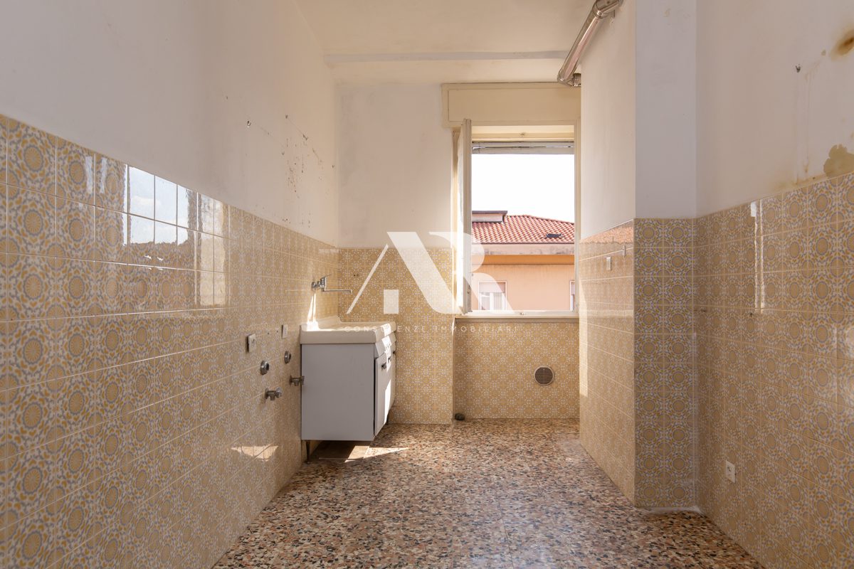 L’appartamento, posto al piano sesto – servito da ascensore – di una palazzina anni ’60, si presenta con impianti e finiture originali, è necessaria pertanto una ristrutturazione integrale.