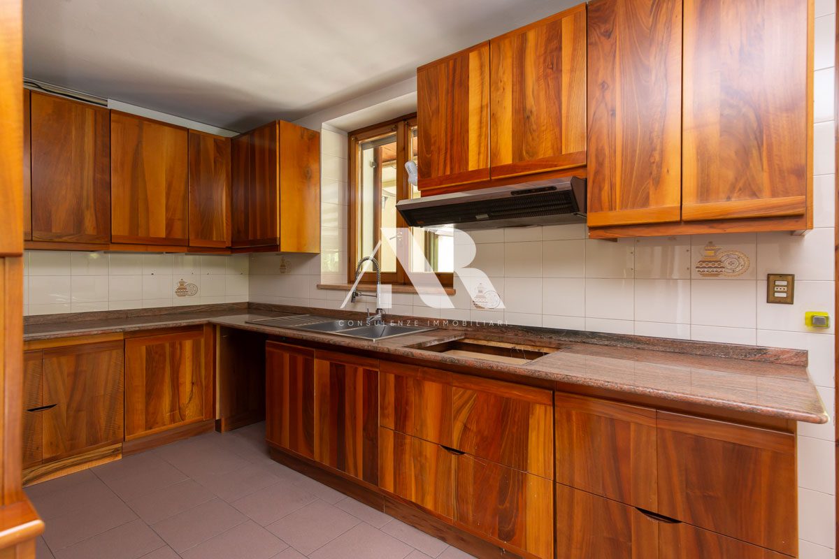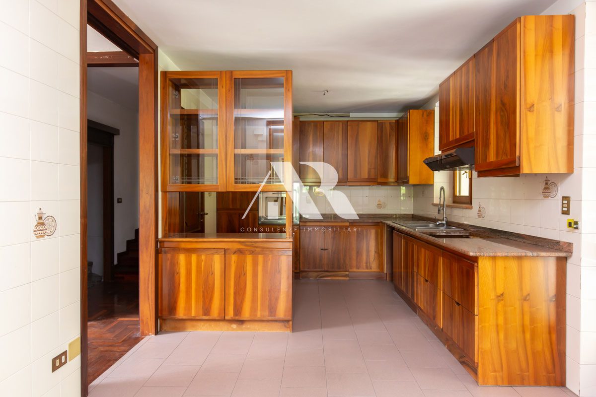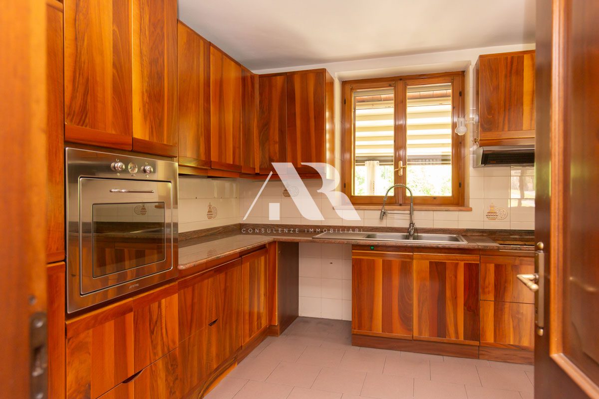L’immobile, posto al piano terra, si compone di due zone ben distinte, sfalsate da pochi gradini, e più precisamente un’ampia e luminosa zona giorno composta da soggiorno con camino, sala da pranzo, cucina abitabile e una splendida terrazza di circa 35 mq che si affaccia sul giardino privato, al quale si può accedere tramite una bellissima scalinata; la zona notte si compone di un ampio corridoio finestrato, camera padronale con ampio bagno finestrato esclusivo, due camere ed un secondo bagno, anch’esso finestrato.