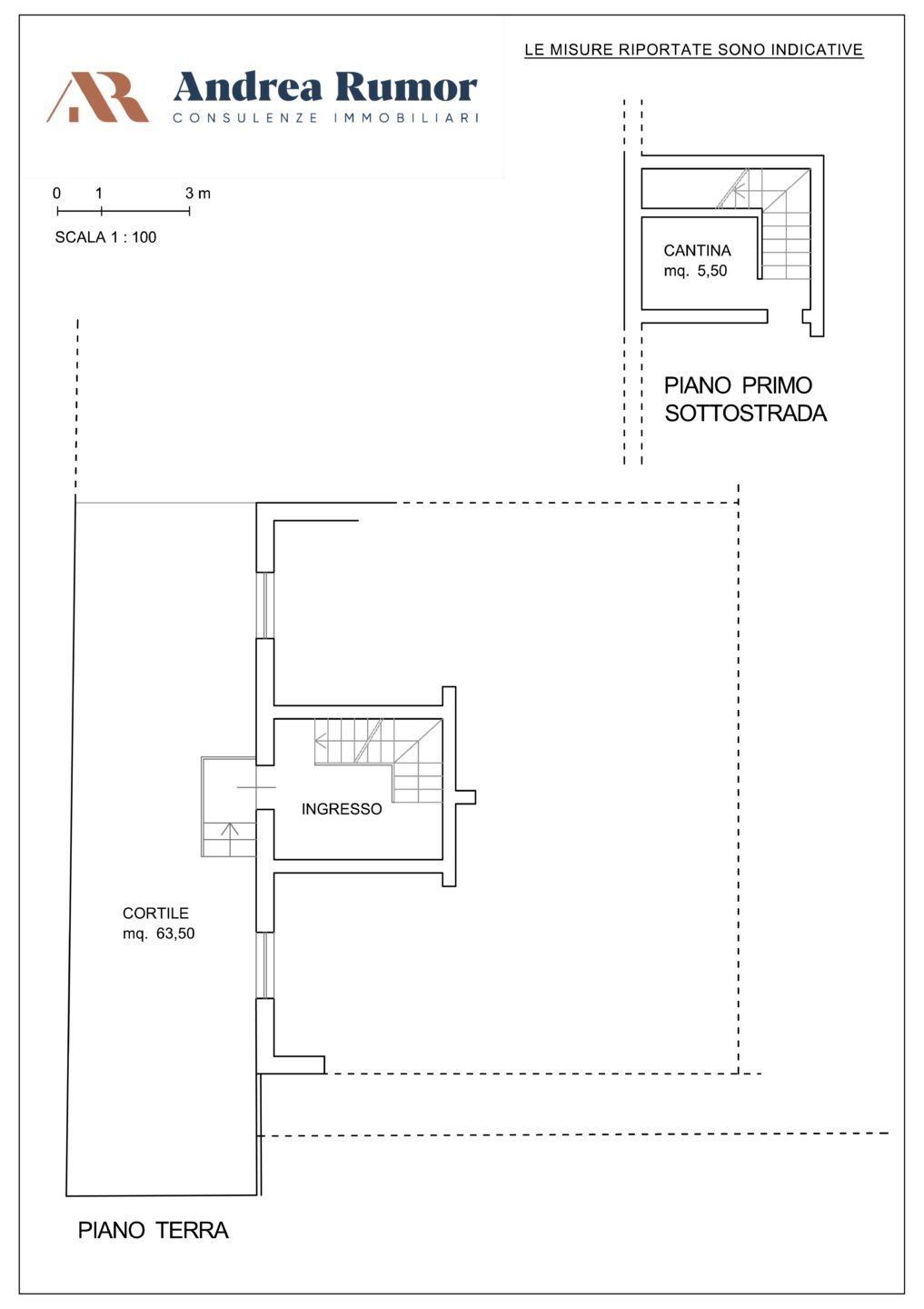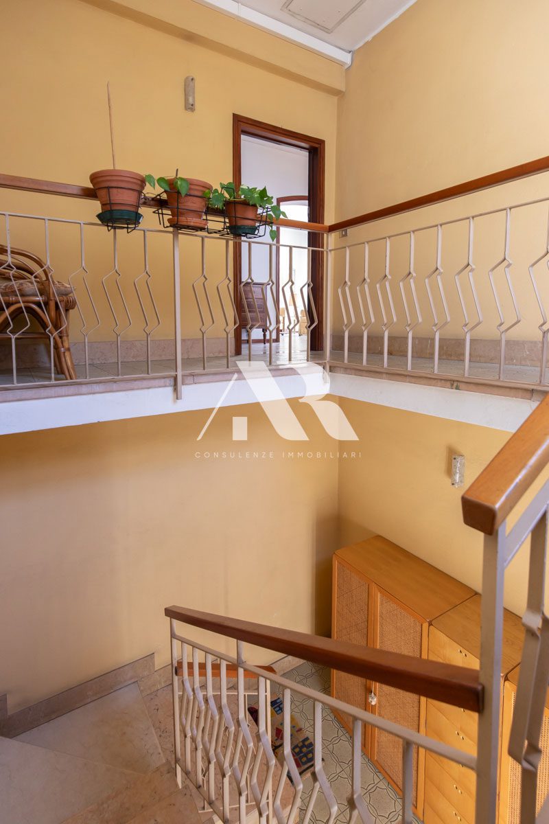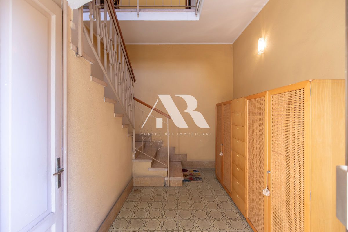 Un ampio ingresso molto utile come guardaroba precede la scala che porta al piano primo (ultimo) dove si sviluppa una metratura di 135 mq.