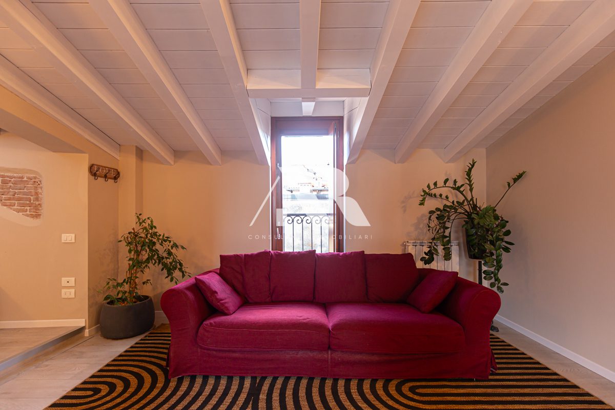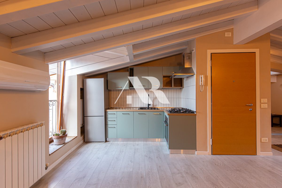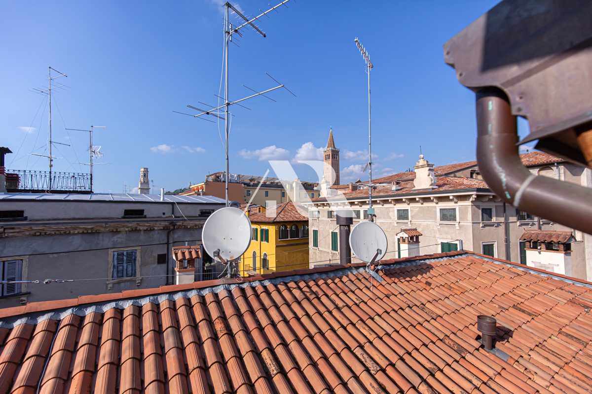 Situato nel cuore del centro storico di Verona, affittasi ampio appartamento mansardato, posto al piano ultimo di una graziosa palazzina di poche unità immobiliari.